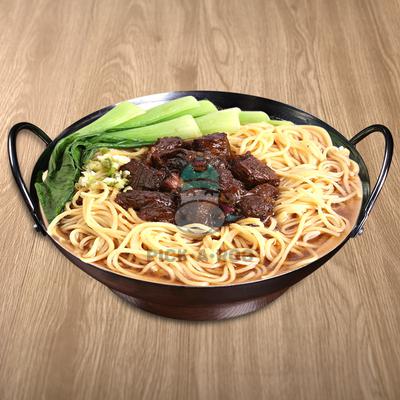 Hongkong style fresh noodle soup with savory beef slices
