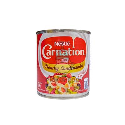 Nestle Carnation Condensada is a popular brand of sweetened condensed milk. This particular variant comes in a can with a net weight of 379 grams. Condensed milk is made by removing water from cow's milk and adding sugar, resulting in a thick and sweet product. Nestle Carnation Condensada is known for its rich and creamy texture, making it a versatile ingredient in various recipes and beverages. Carnation Condensada is commonly used in desserts, baking, and as a topping or filling for pastries, cakes, and pies. It adds a creamy and sweet flavor to dishes and can be an essential ingredient in making caramel, flan, fudge, and other sweet treats.