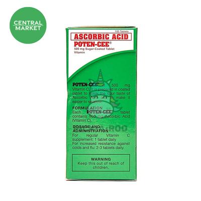 Each Poten-Cee tablet contains 500mg Ascorbic Acid (Vitamin C).