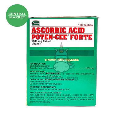 Poten-Cee Forte is a 1000mg Ascorbic Acid tablet in an 8-Hour-Time-Release formula for a whole-day Vitamin C protection.