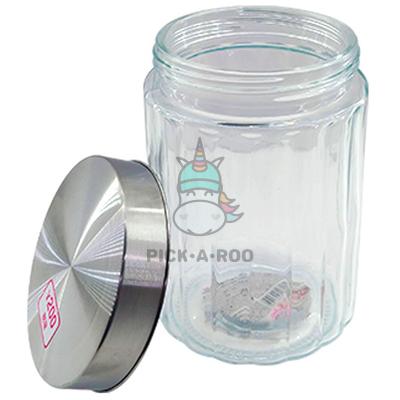 A Glass Storage Container With A Steel Lid That Can Store A Variety Of Items, From Unsorted Foods To Miscellaneous Goods.