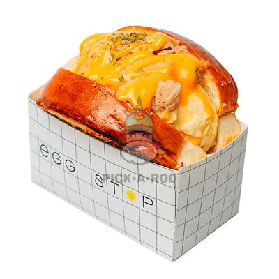 Freshly baked Brioche buns, fluffy scrambled eggs, tuna with mayo, pickles and onions and cheddar cheese topped with our special homemade signature sauces.