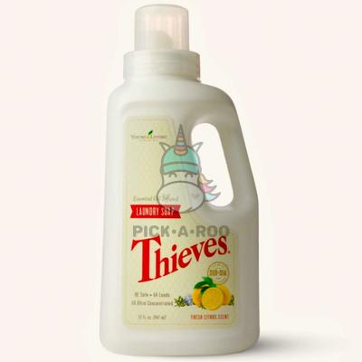 Thieves® Laundry Soap is potent, plant-based, and ultra-concentrated with pure essential oils and powerful enzymes to effectively clean your clothes and leave them refreshed with a light citrus scent.