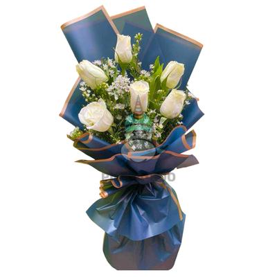 6 Piece Roses Hand Bouquet (White)