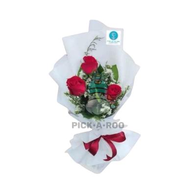 3 Piece Roses Hand Bouquet (Red)