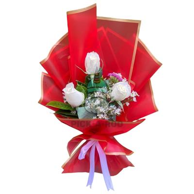 3 Piece Roses Hand Bouquet (White)