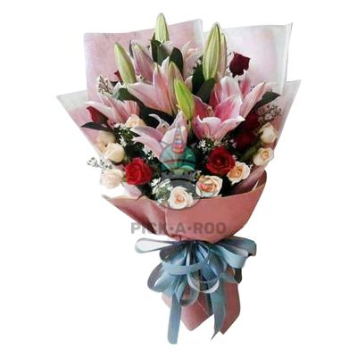3 pcs Stargazer with mix of local roses