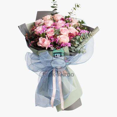 This arrangement is wrapped the Designer Blooms way, dabbed with our signature scent and comes with a printed message card and flower care tips. To make sure it arrives in the best condition, carefully placed inside our signature DB Black box and ready to be received.