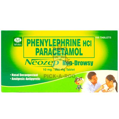 Get Neozep Non-Drowsy (Phenylephrine HCI, Paracetamol). For the relief of clogged nose, postnasal drip, headache, and fever associated with common cold.