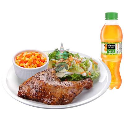 It is served with one quarter of our tasty and juicy Classic Roasted Chicken, one solo serving of Caesar Salad, Polenta and a drink.