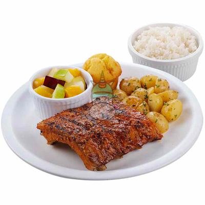 Half Slab Spiced Ribs with 2 regular side dish, rice and muffin.