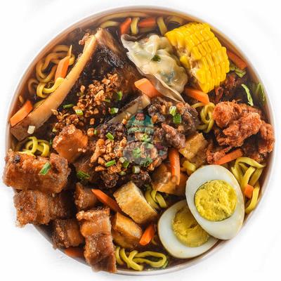 Beef, Miki Noodles, Pechay, Carrots, Egg, Tofu, Vegetable Dumplings, Corn, Chicken Skin, Lechon Kawali, Bone Marrow.
