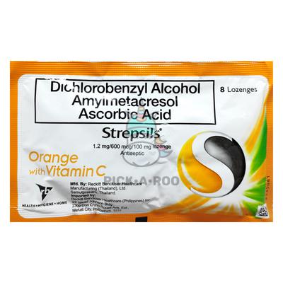 Strepsils Dichlorobenzyl Alcohol Amylmetacresol Ascorbic Acid 1.2mg / 600mcg / 100mg Lozenge Orange With Vitamin C