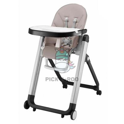 Stylish, functional and comfortable. 7 height adjustment can be configured as a high chair, meal chair or a bouncer. Reclinable back rest. One-touch brake system. 5-point safety harness. Foldable, slim design and self-standing when folded. Adjustable tray settings, easy to wash and maintain. Removable thigh support.