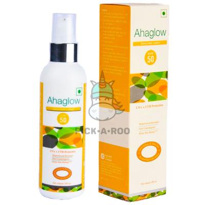 • Ahaglow sunscreen lotion SPF 50 is daily use sunscreen with USFDA approved uv filters, which offers protection from Ultraviolet A, Ultraviolet B Ultraviolet C rays.