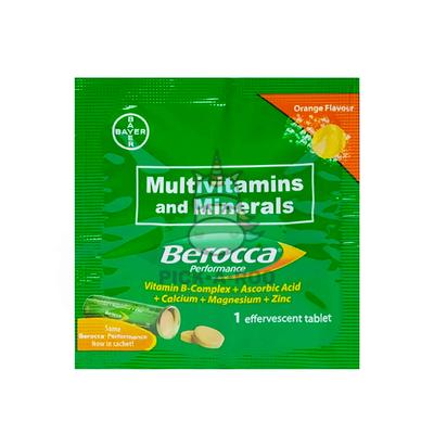 BEROCCA Multivitamins and Minerals Vitamin B-complex + Ascorbic Acid + Calcium + Magnesium + Zinc 1 Effervescent tablet<br /><br />Berocca® Orange is a dissolvable flavored vitamin mineral supplement in the form of an effervescent tablet that is rich in key nutrients including Vitamins B3, B6, and B12 to support mental and physical energy and Vitamin C and Zinc to support immune health.*