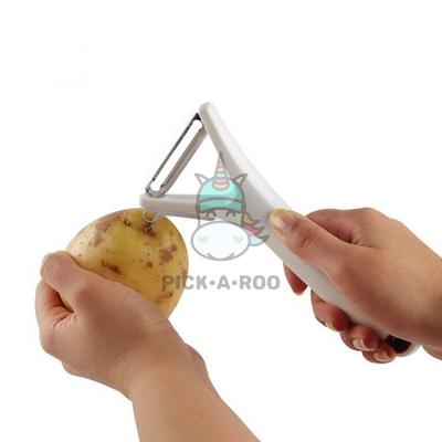 • The Y Peeler also features a convenient eye remove tool that quickly removes imperfections. A hanging loop has been included for convenient storage. The Zyliss Y Peeler is multipurpose tool that can be used with a host of fruits and vegetables.