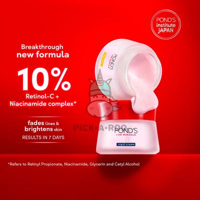 • Pond’s Age Miracle Wrinkle Corrector Day Cream SPF 18 PA++ is an anti-wrinkle day cream made with Pond's most advanced technology Retinol-C Complex; that penetrates the skin continuously to release powerful anti-aging retinoid actives for 24hr non-stop.