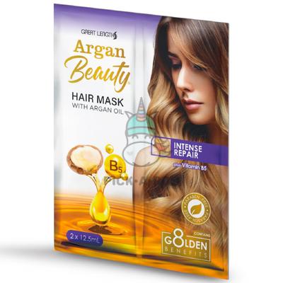 • Argan Beauty Hair Mask with Argan Oil Intense Repair is a 5-minute revitalizing treatment that quickly repairs hair that is weak or damaged caused by constant stying. Its high performance formula is rich in Argan oil and Vitamin B5 to fortify and restructure hair that's been damaged by chemical treatments or heat styling, so hair becomes stronger and more beautiful.