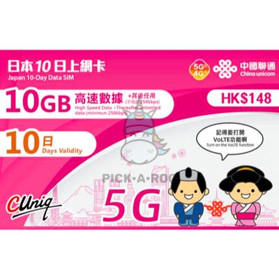 Travel Sim Japan 10 Day Data SIM 10GB High Speed Data + Therafter Unlimited Data