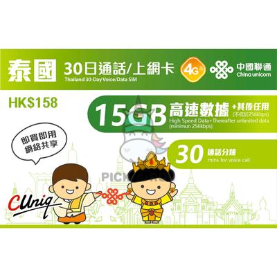 Travel Sim Thailand 30 Day Voice/Data SIM 15GB High Speed Data + Therafter Unlimited Data + 30 Mins Call