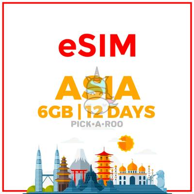 Travel E-Sim Asia 12 Day Data SIM 6GB High Speed Data + Therafter Unlimited Data
