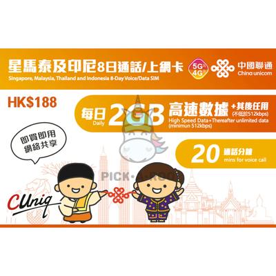 Travel Sim Singapore Malaysia Thailand & Indonesia 8 Day Voice/Data SIM 2GB Daily High Speed Data + Therafter Unlimited Data + 20 Mins Call