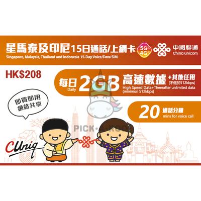 Travel Sim Singapore Malaysia Thailand & Indonesia 15 Day Voice/Data SIM 2GB Daily High Speed Data + Therafter Unlimited Data + 20 Mins Call