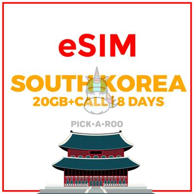 Travel E-Sim South Korea 8 Day Voice Data SIM 20GB High Speed Data + Thereafter Unlimited Data