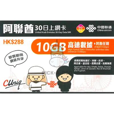 Travel Sim UAE United Arab Emirates 30 Day Data SIM 10GB High Speed Internet Data + Therafter Unlimited Data